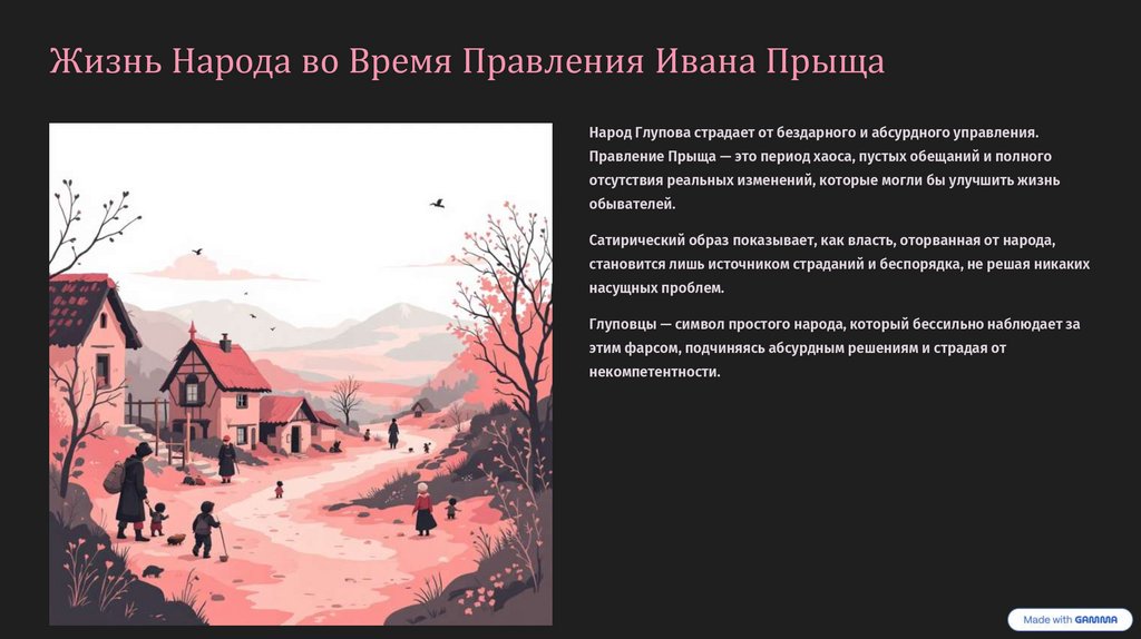 Жизнь Народа во Время Правления Ивана ПрыщаНарод Глупова страдает от бездарного и абсурдного управления.