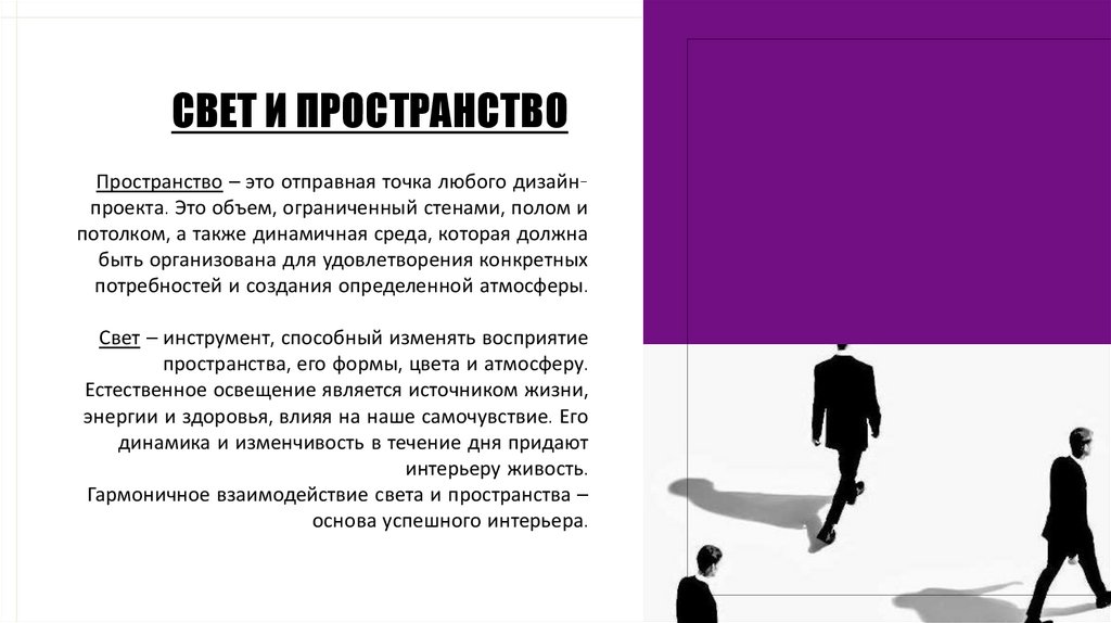СВЕТ И ПРОСТРАНСТВОПространство – это отправная точка любого дизайнпроекта. Это объем, ограниченный стенами, полом и