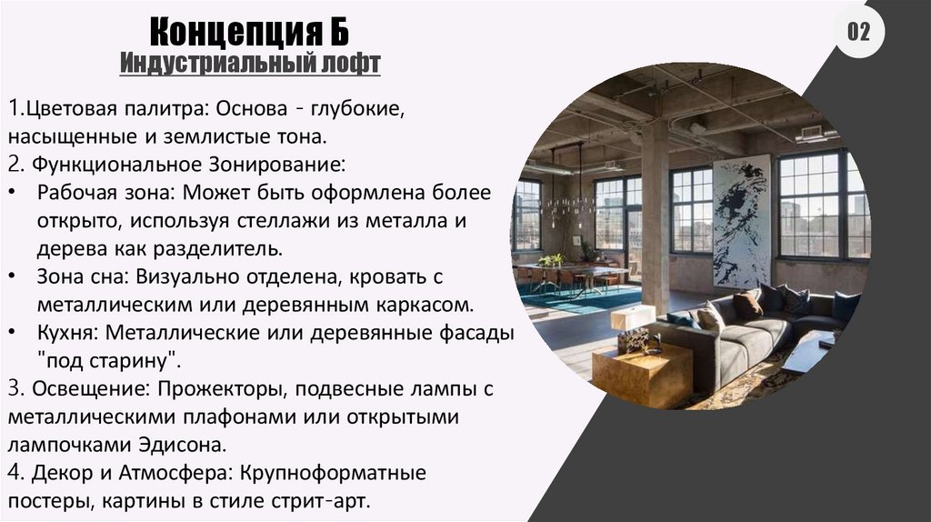 • Зона сна: Отделена легкой, полупрозрачной перегородкой или функциональной,