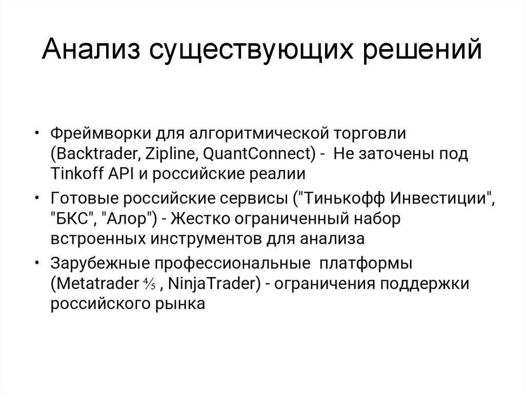 Анализ существующих решений• Фреймворки для алгоритмической торговли