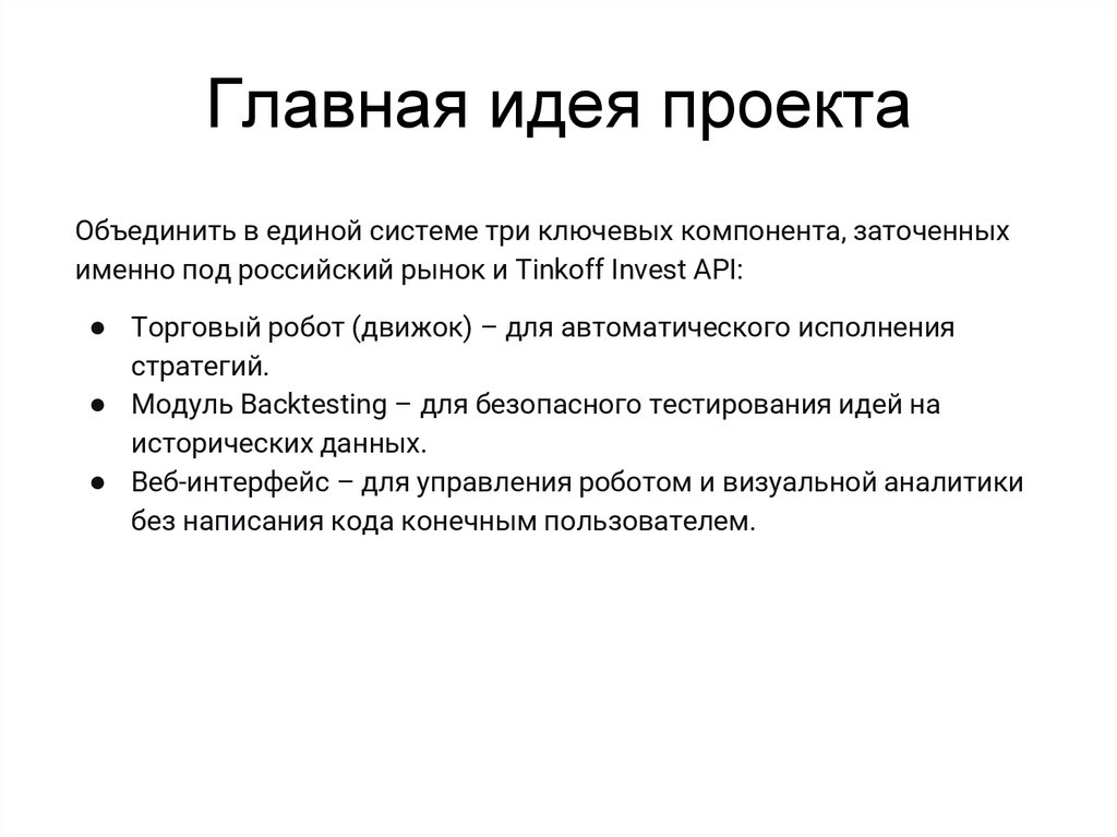 Главная идея проектаОбъединить в единой системе три ключевых компонента, заточенных