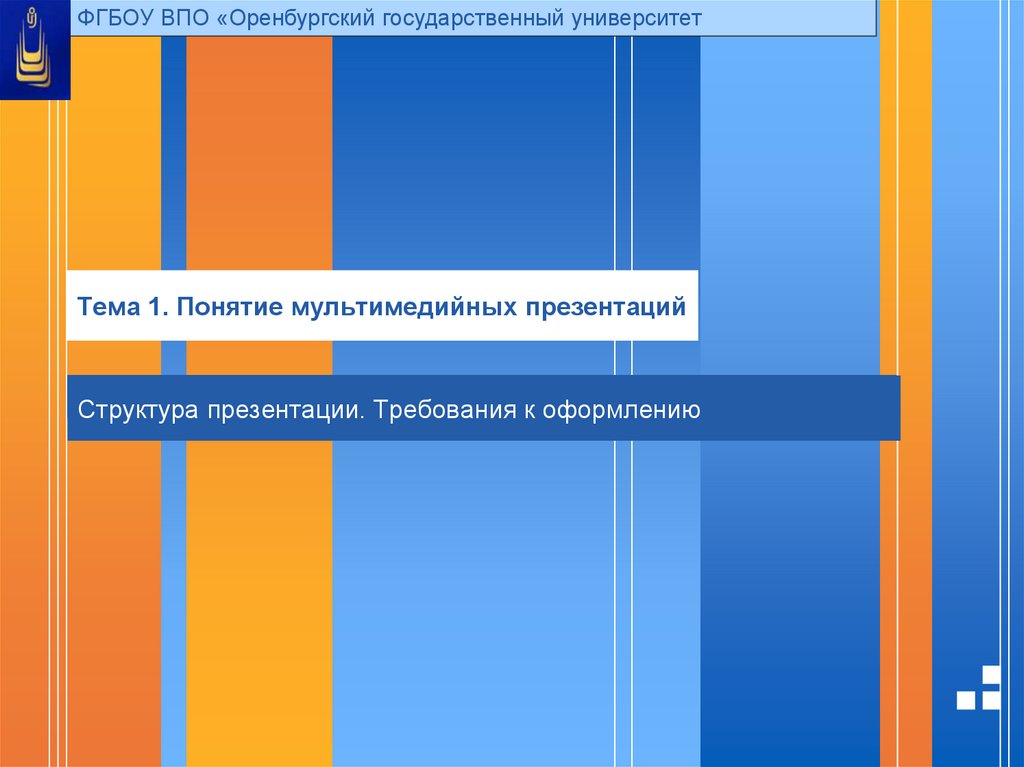 ФГБОУ ВПО «Оренбургский государственный университетТема 1. Понятие мультимедийных презентаций