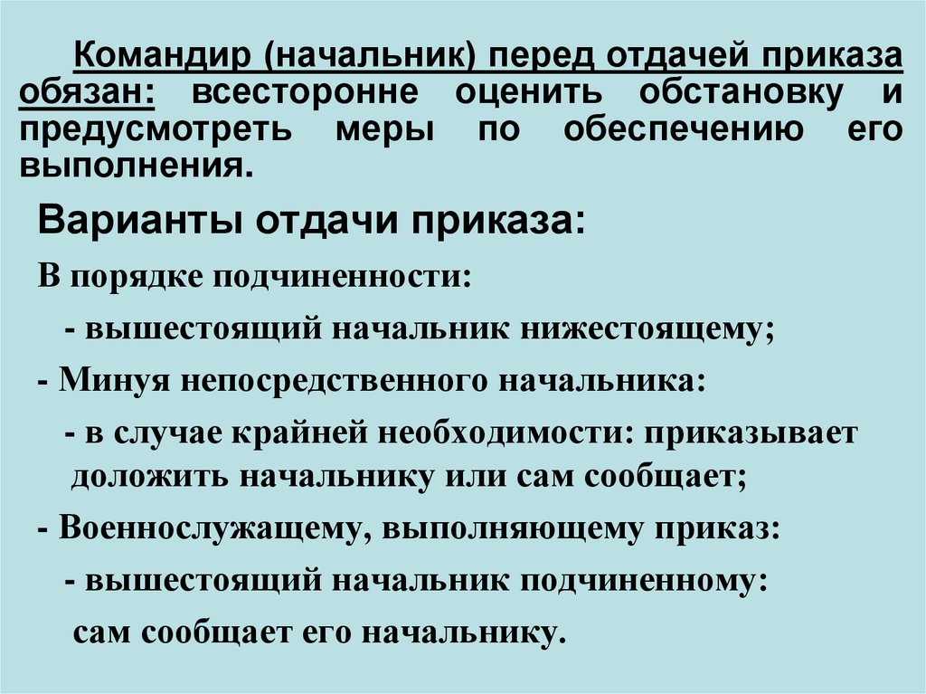 подчиненные. Старшие и младшие. Порядок отдачи и
