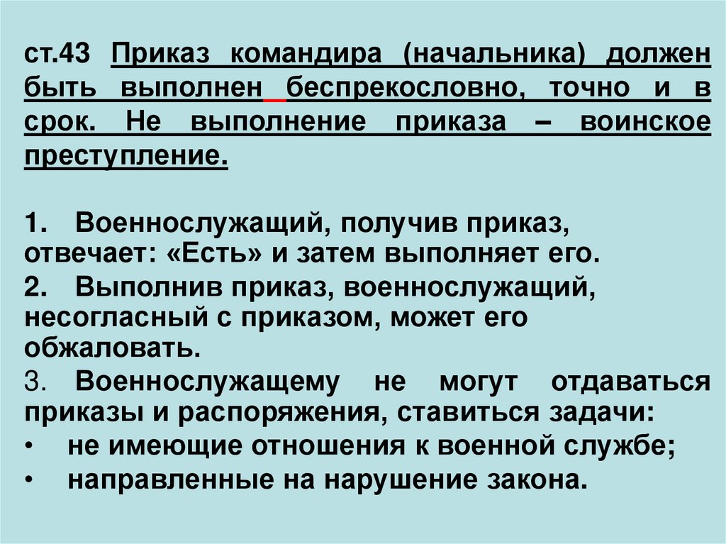 Подчиненный обязан • беспрекословно выполнять приказыначальника.
