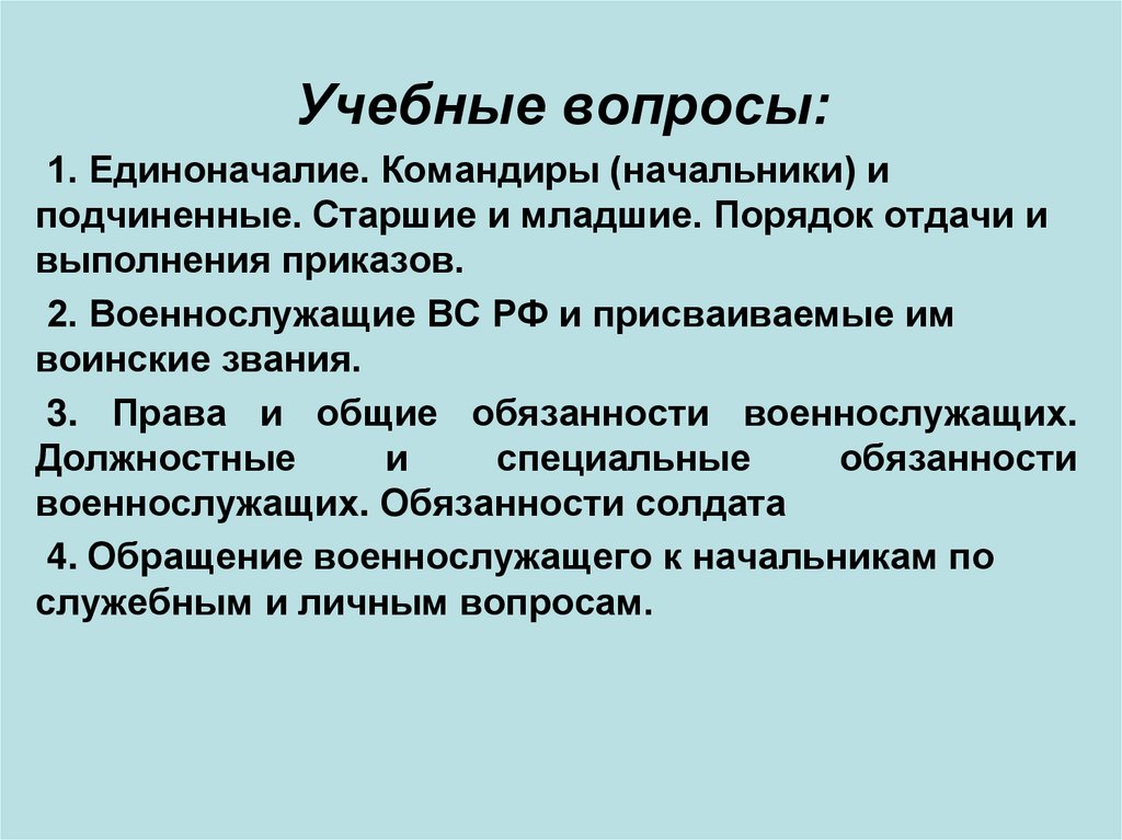 Учебные вопросы:1. Единоначалие. Командиры (начальники) и