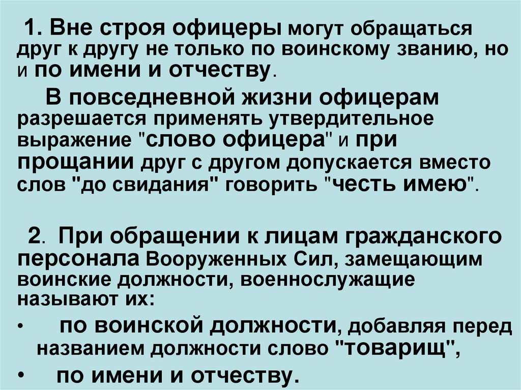 По своему служебному положению ивоинскому званию одни военнослужащие по