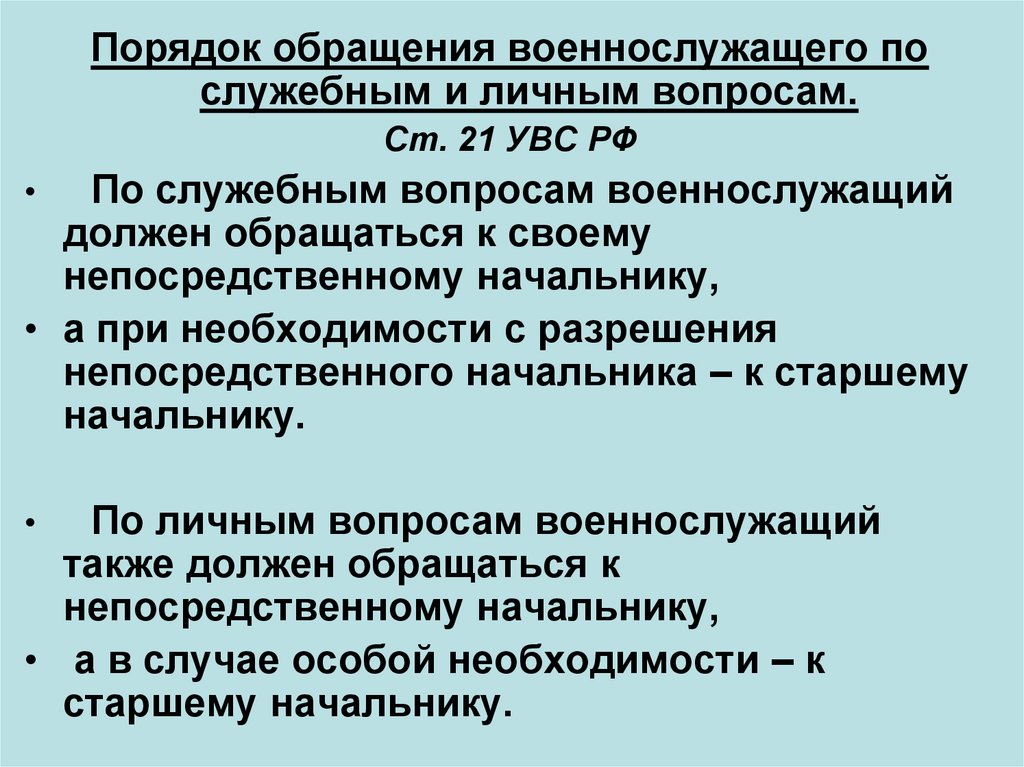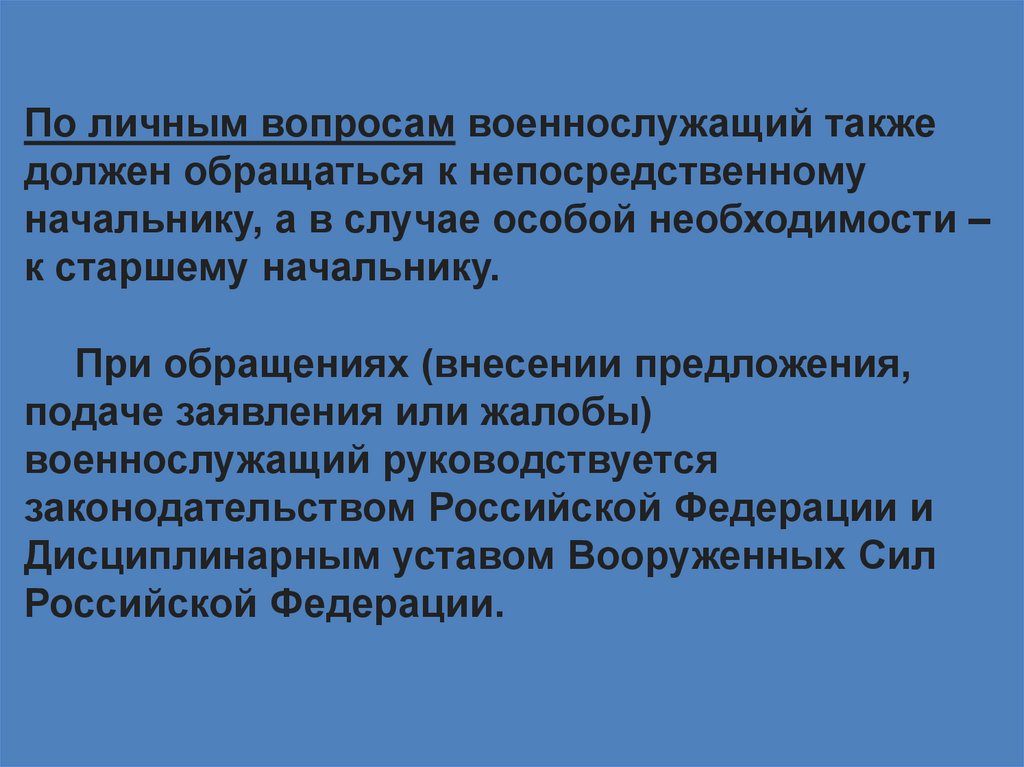 По личным вопросам военнослужащий такжедолжен обращаться к непосредственному