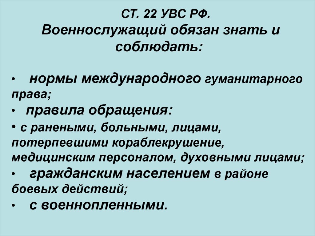 (прил. 4 к Наставлению по международному гуманитарному праву для ВС РФ)