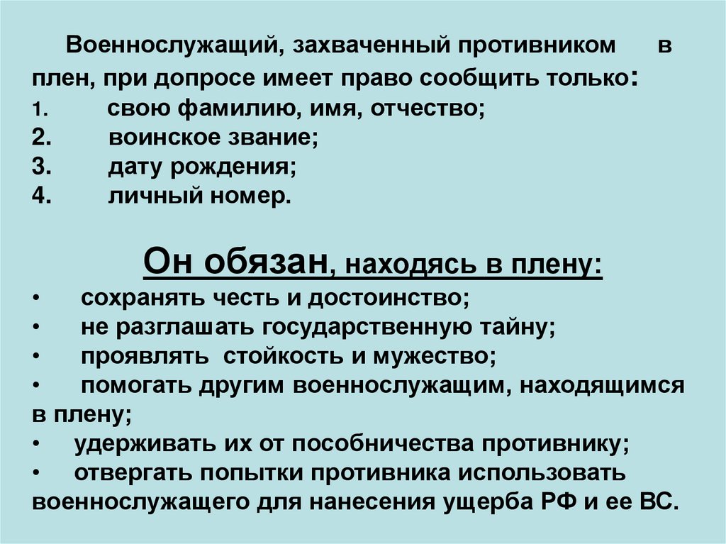 противника. Относись к нему гуманно. Не подвергай его пыткам.