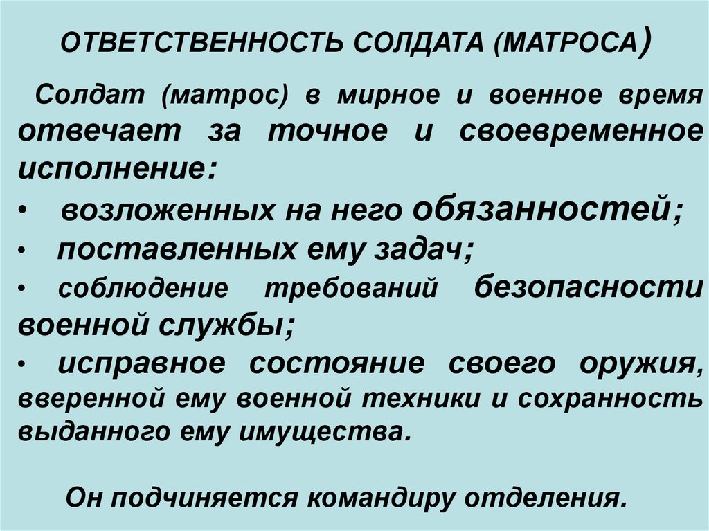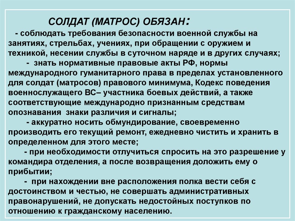 СОЛДАТ (МАТРОС) ОБЯЗАН:- соблюдать требования безопасности военной службы на