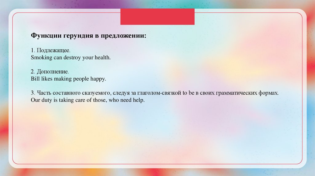 Герундий употребляется1. С глаголами и фразами, которые обозначают предпочтение: like, love, hate, dislike, enjoy, good at, fond