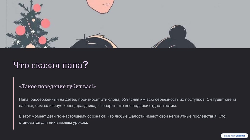 Папа, рассерженный на детей, произносит эти слова, объясняя им всю серьёзность их поступков. Он тушит свечи