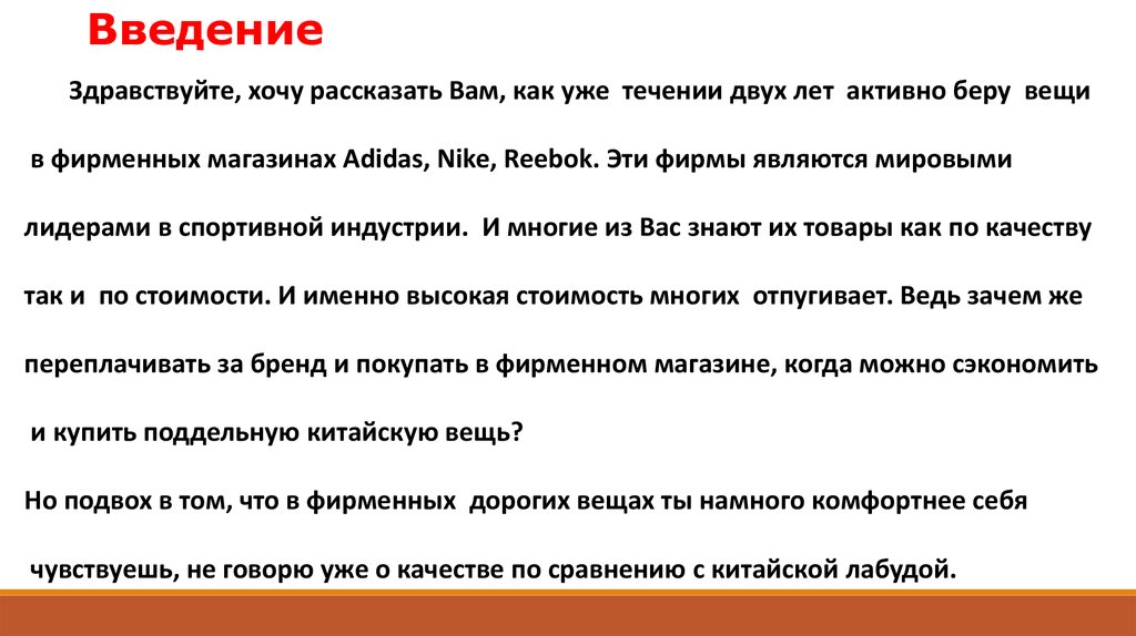 в фирменных магазинах Adidas, Nike, Reebok. Эти фирмы являются мировыми