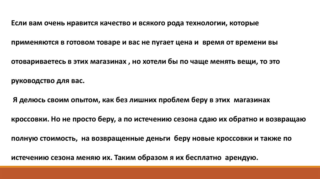 кроссовки. Но не просто беру, а по истечению сезона сдаю их обратно и возвращаю