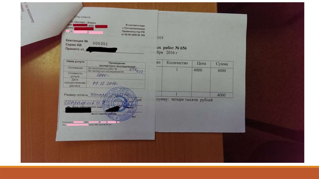 день прямо с кассы Вам возвращают деньги за экспертизу ,а в течении двух недель вам