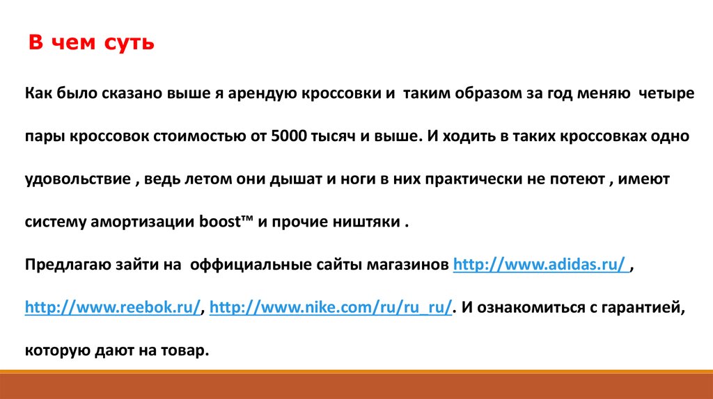В чем сутьКак было сказано выше я арендую кроссовки и таким образом за год меняю четыре