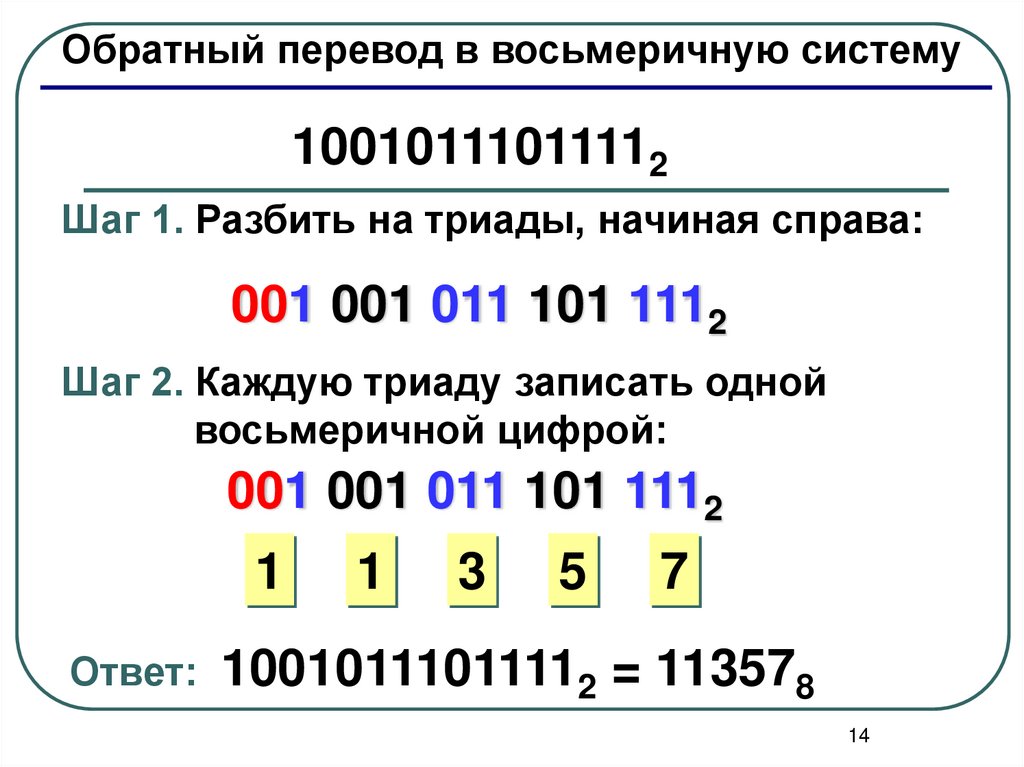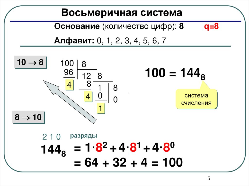 счисления в восьмеричную.