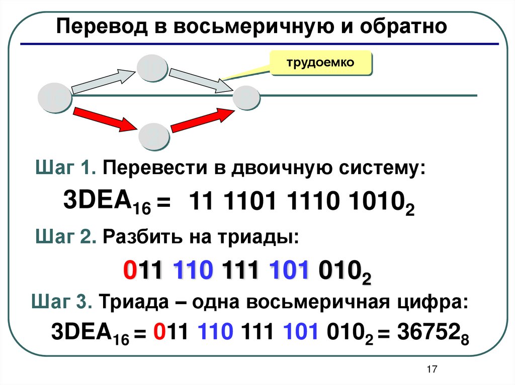 Перевод в восьмеричную и обратнотрудоемко