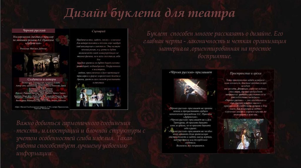 Дизайн буклета для театраБуклет способен многое рассказать о дизайне. Его