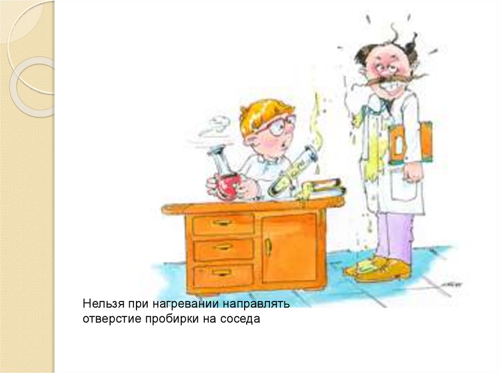 Нельзя при нагревании направлятьотверстие пробирки на соседа