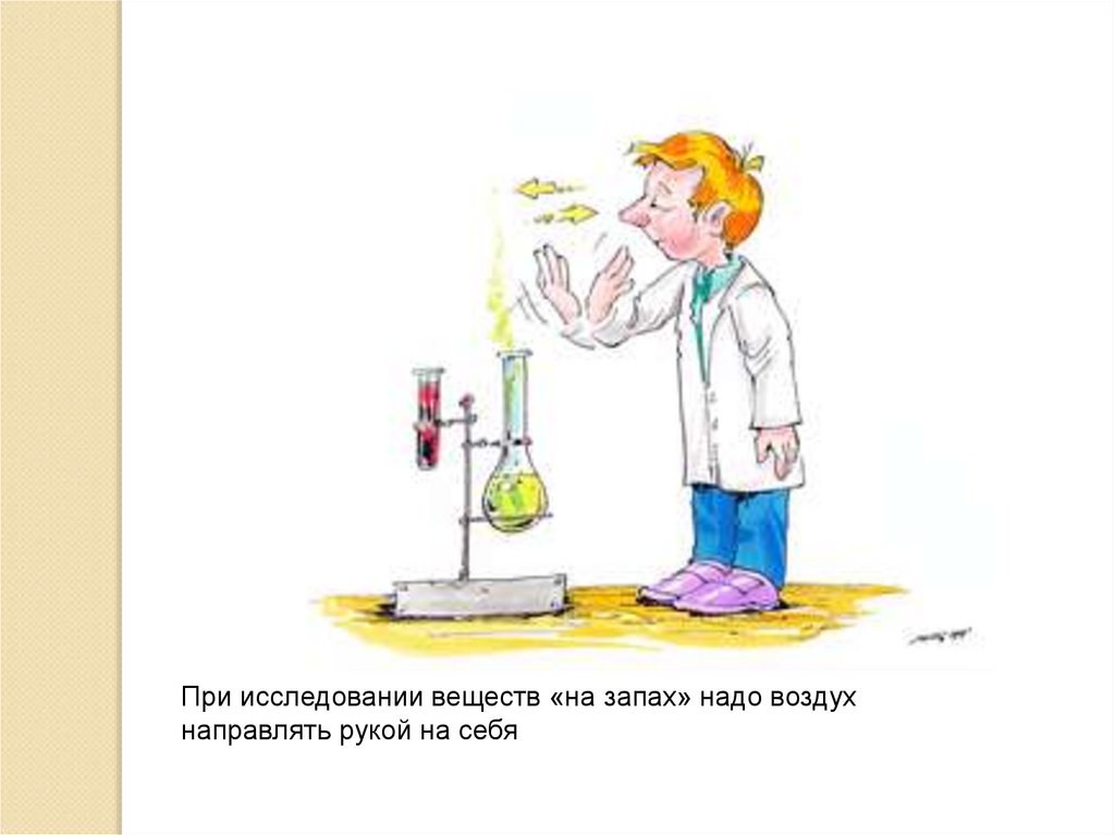 При исследовании веществ «на запах» надо воздухнаправлять рукой на себя