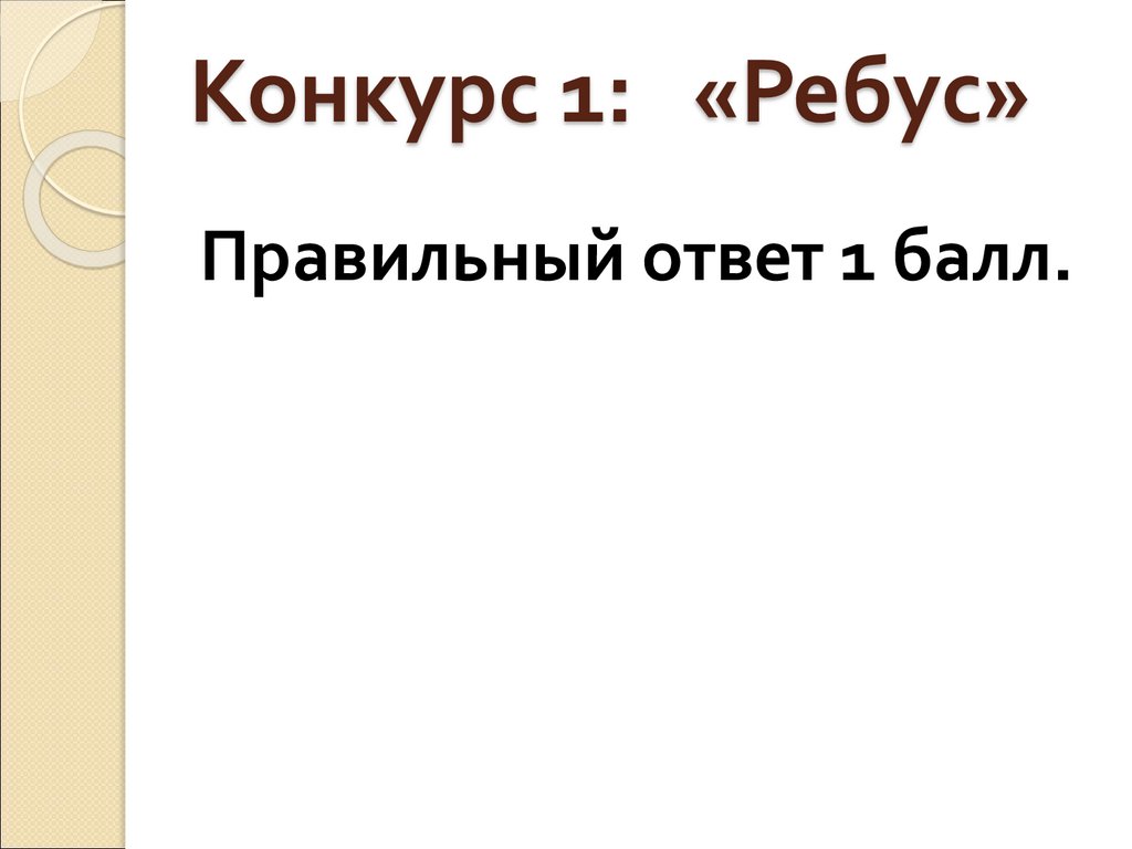 Конкурс 1: «Ребус»Правильный ответ 1 балл.