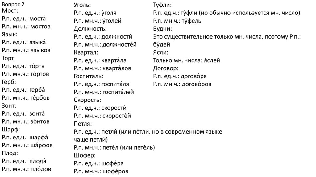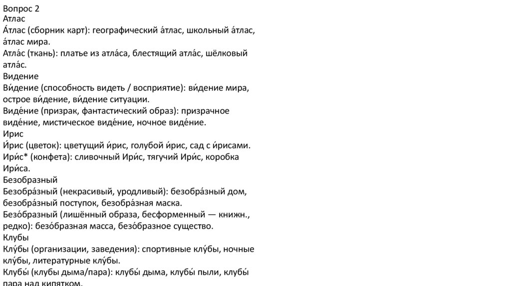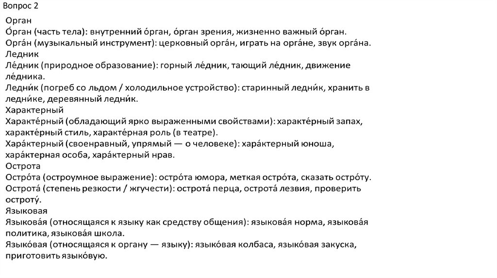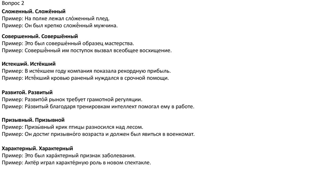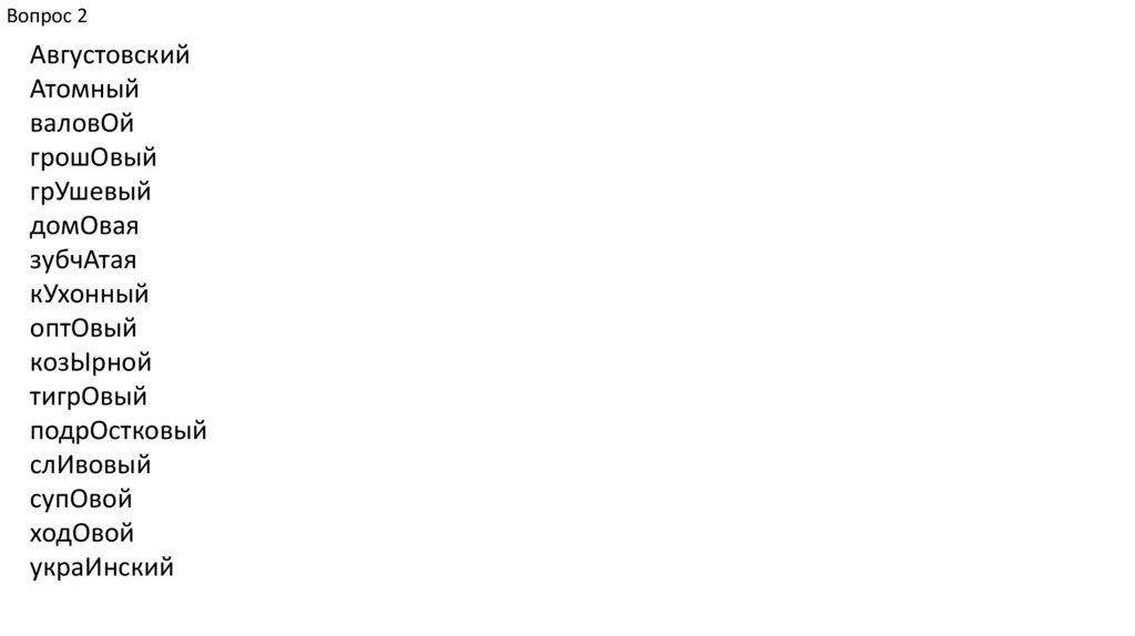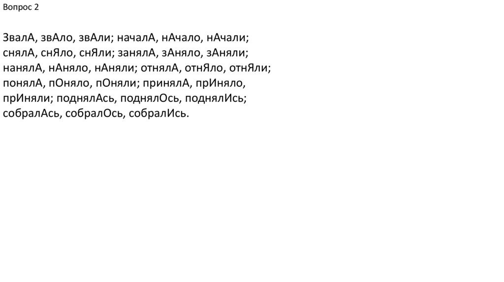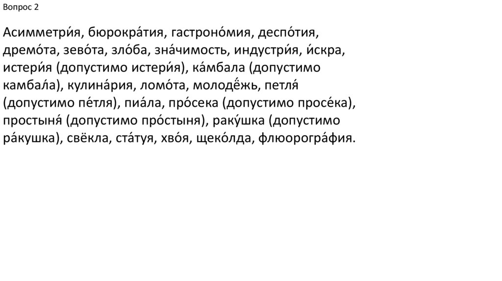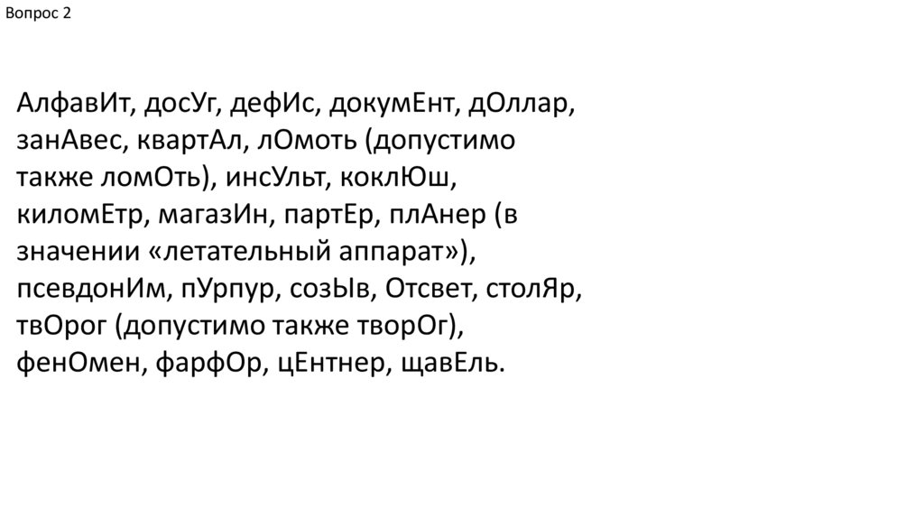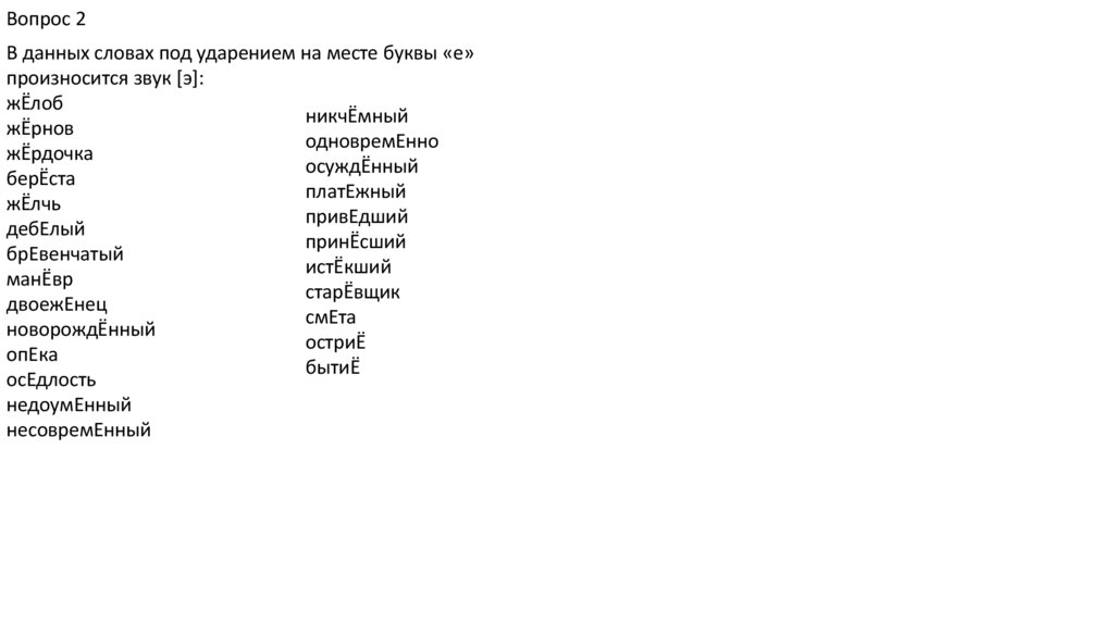 Вопрос 2В данных словах под ударением на месте буквы «е»