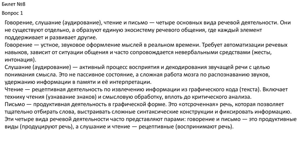 Социально-ориентированное общение. Представлено такими формами, как доклад, лекция, ораторская речь, обращение