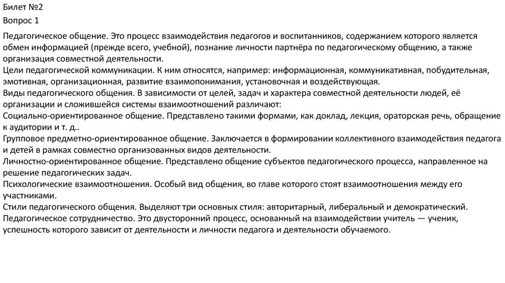 Виды педагогического общения. В зависимости от целей, задач и характера совместной деятельности людей, её