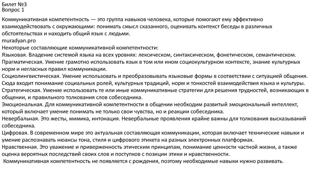 Некоторые составляющие коммуникативной компетентности: