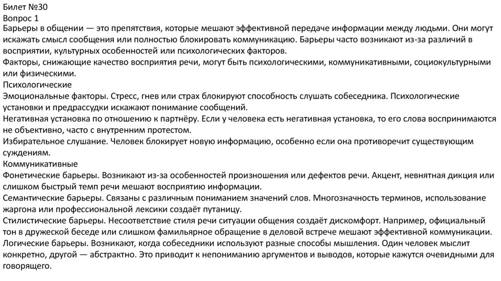 Факторы, снижающие качество восприятия речи, могут быть психологическими, коммуникативными, социокультурными