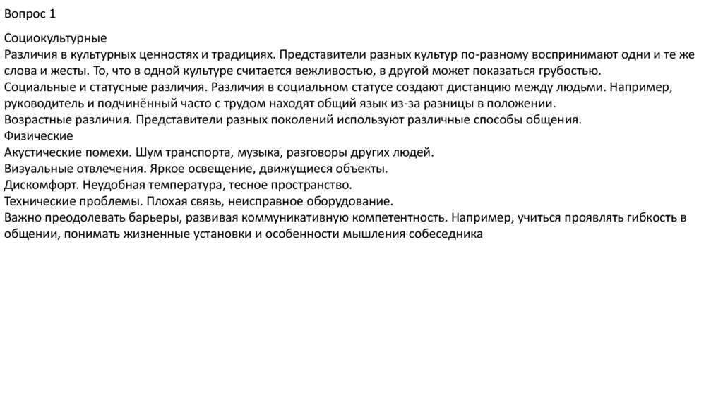 Вопрос 1Социокультурные