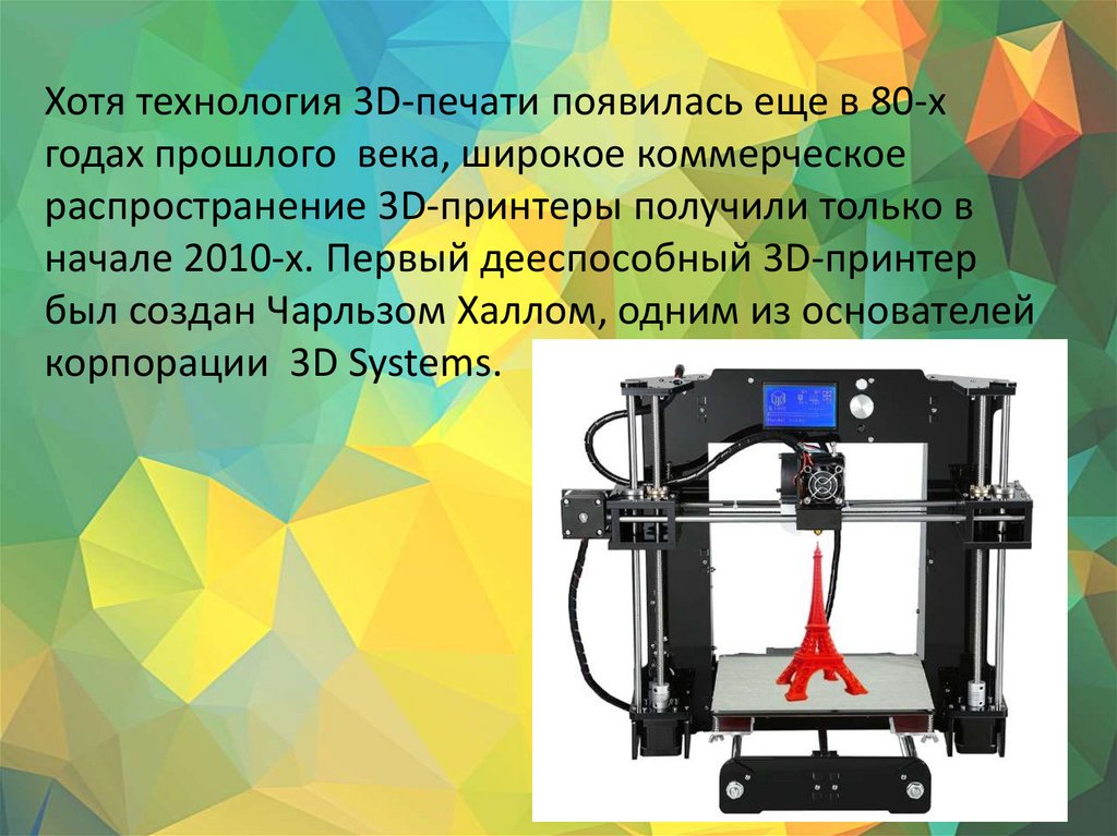 Хотя технология 3D-печати появилась еще в 80-хгодах прошлого века, широкое коммерческое