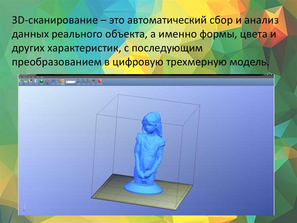 3D-сканирование – это автоматический сбор и анализданных реального объекта, а именно формы, цвета и