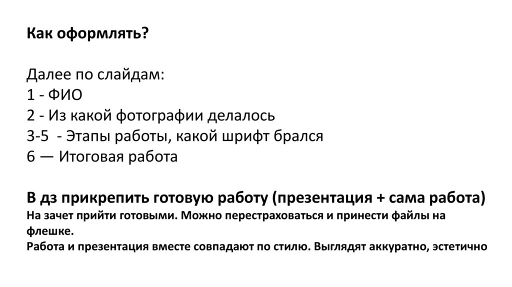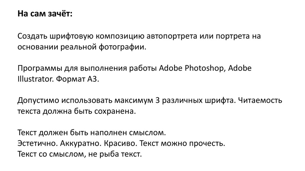 На сам зачёт:Создать шрифтовую композицию автопортрета или портрета на