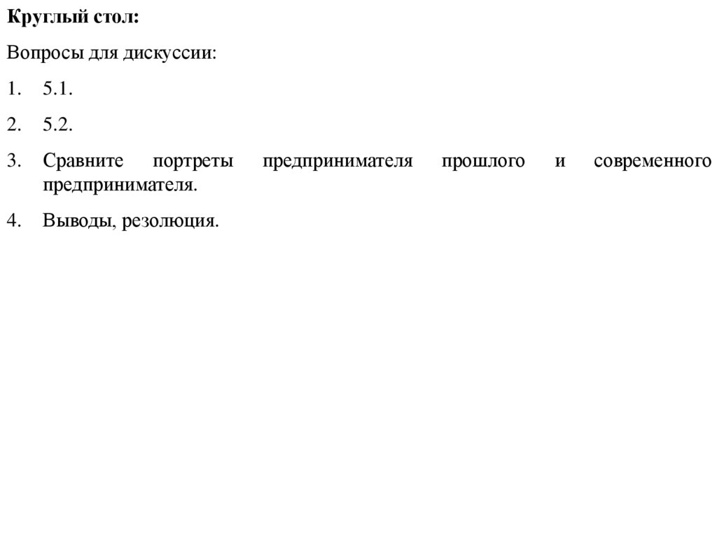 Задание для подготовки круглого стола (по 4-5 чел.):В рамках подготовки к дискуссии круглого стола проведите