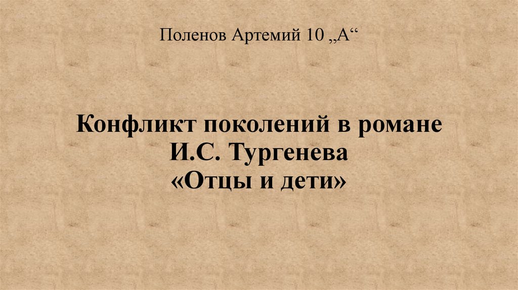 Поленов Артемий 10 „А“Конфликт поколений в романе