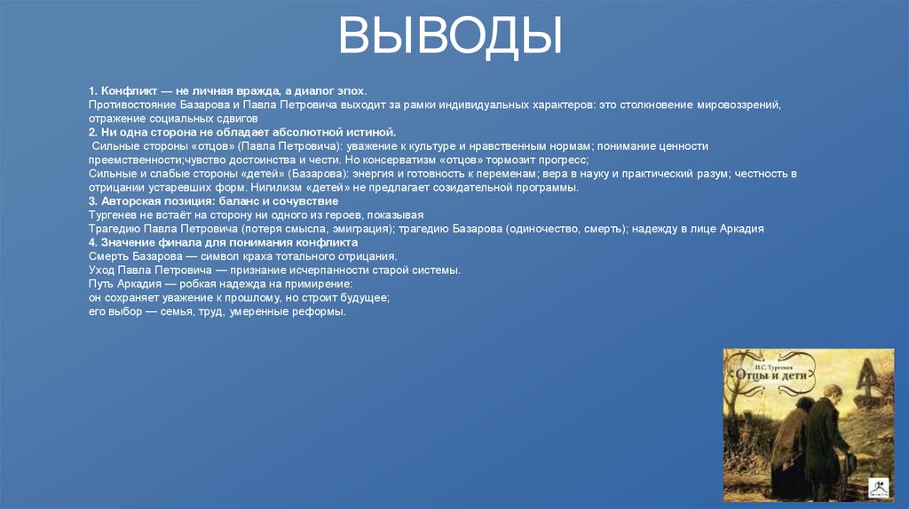 ВЫВОДЫ1. Конфликт — не личная вражда, а диалог эпох.