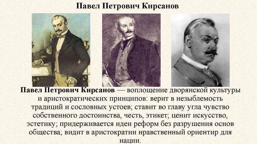 Павел Петрович КирсановПавел Петрович Кирсанов — воплощение дворянской культуры