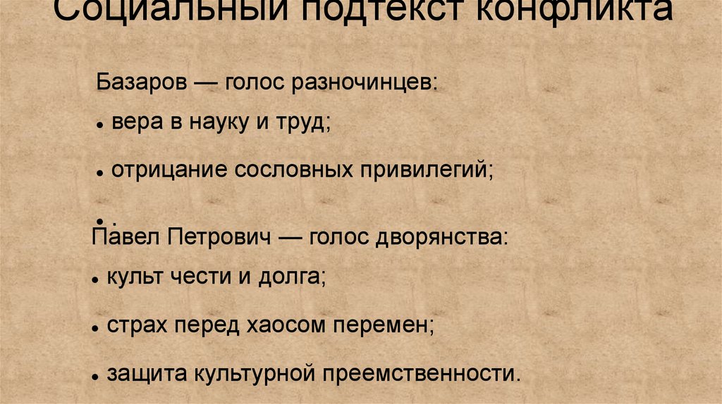 Социальный подтекст конфликтаБазаров — голос разночинцев: