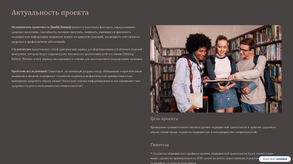 Актуальность проектаМедицинская грамотность (health literacy) является ключевым фактором, определяющим