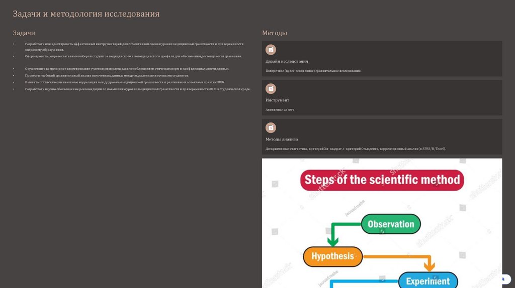 Разработать научно обоснованные рекомендации по повышению уровня медицинской грамотности и приверженности ЗОЖ в студенческой среде.