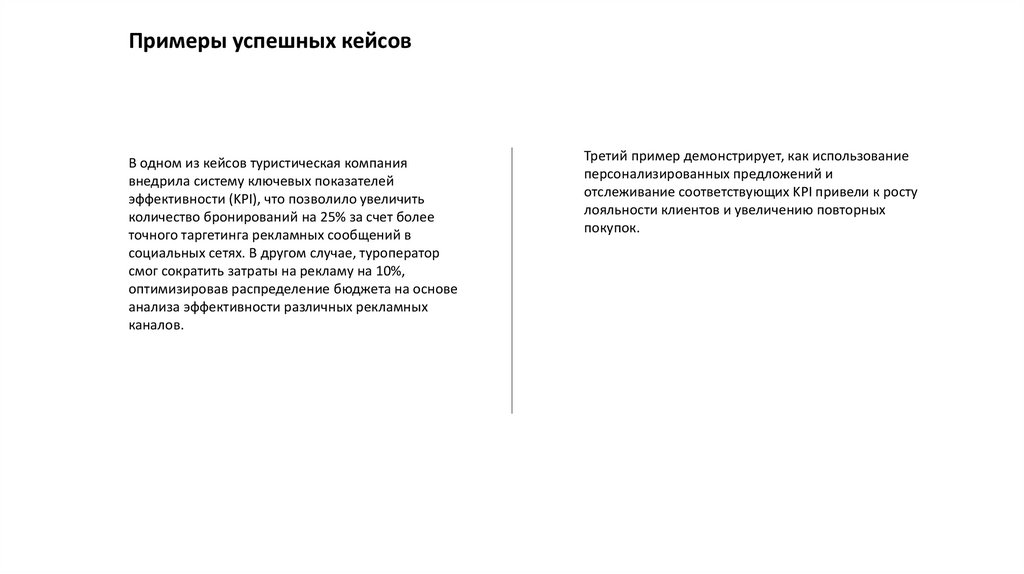 Примеры успешных кейсовВ одном из кейсов туристическая компания