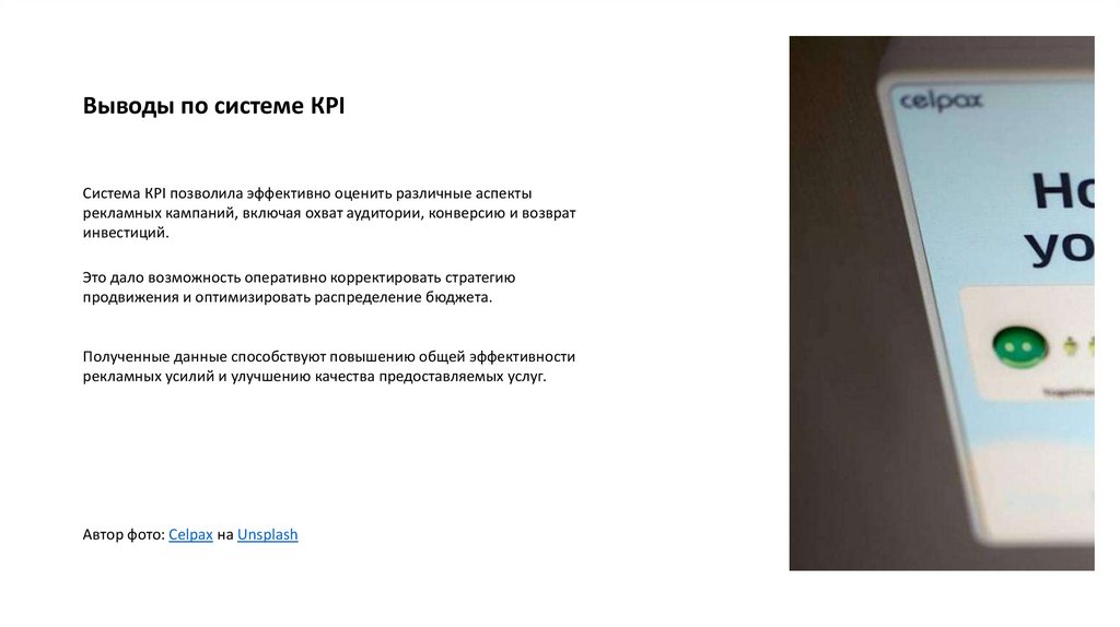 Выводы по системе КРІСистема КРІ позволила эффективно оценить различные аспекты