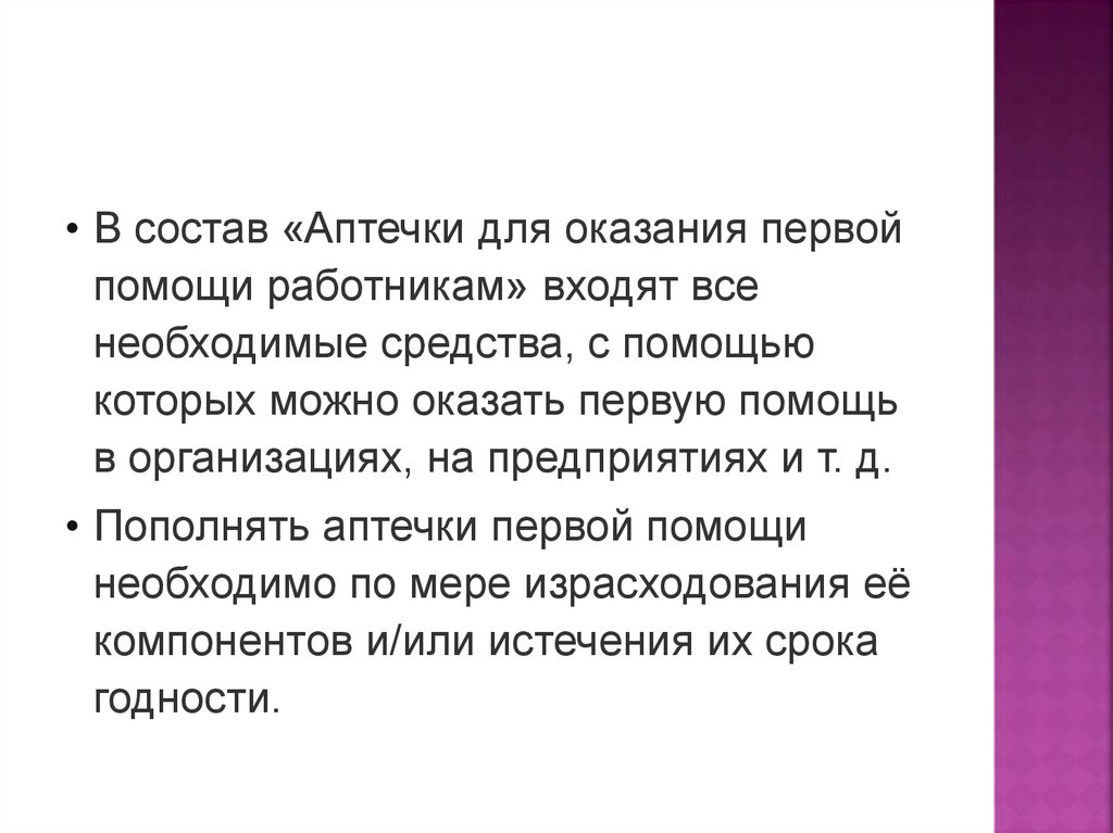 относятся «Аптечка для оказания первой помощи пострадавшим в