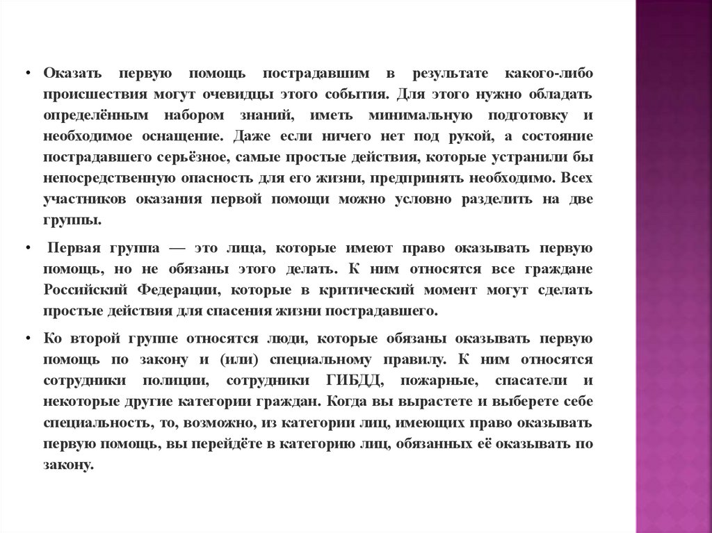 первую помощь, вы перейдёте в категорию лиц, обязанных её оказывать по