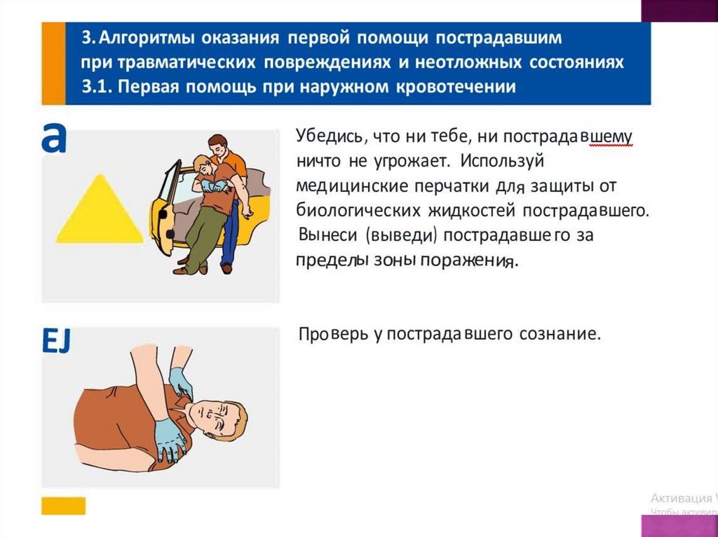 вам ничего не угрожает, тогда вы можете подойти к пострадавшему.