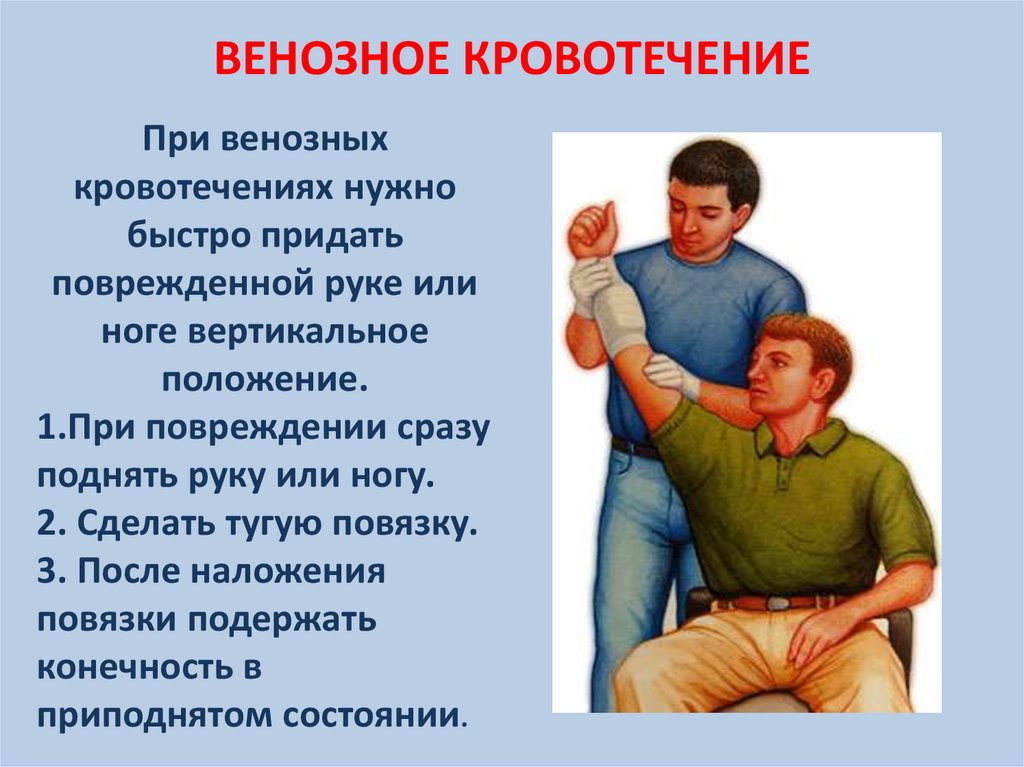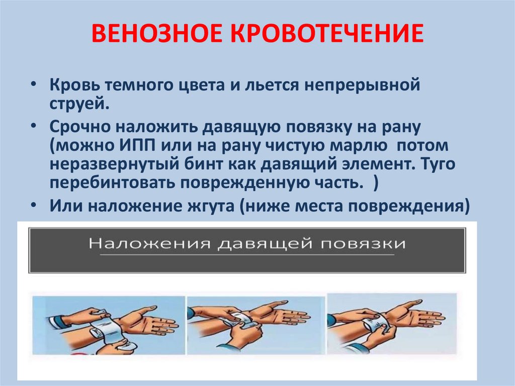 ВЕНОЗНОЕ КРОВОТЕЧЕНИЕ• Кровь темного цвета и льется непрерывной