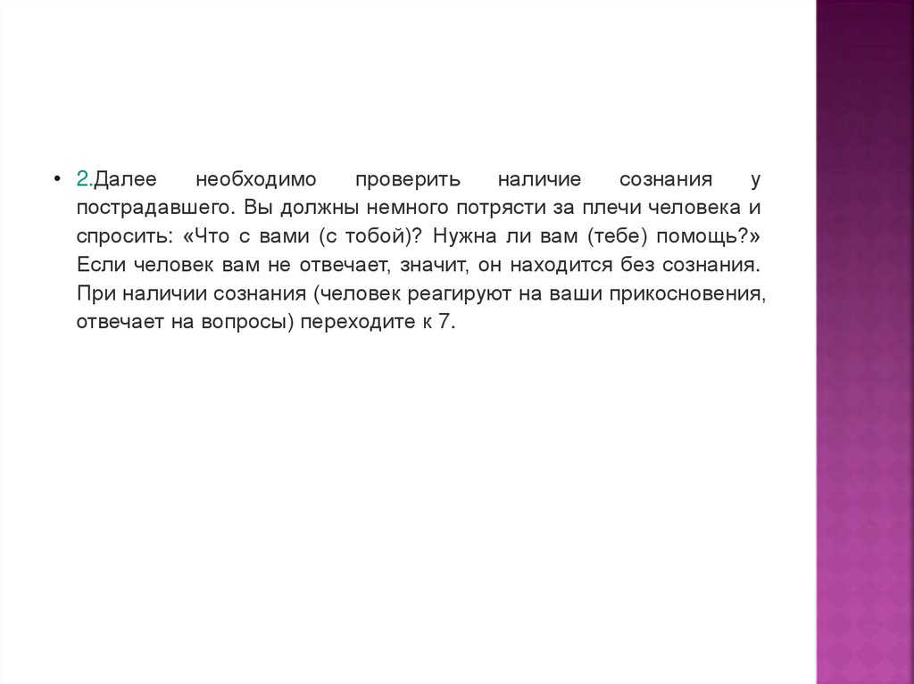 пострадавшего. Вы должны немного потрясти за плечи человека и