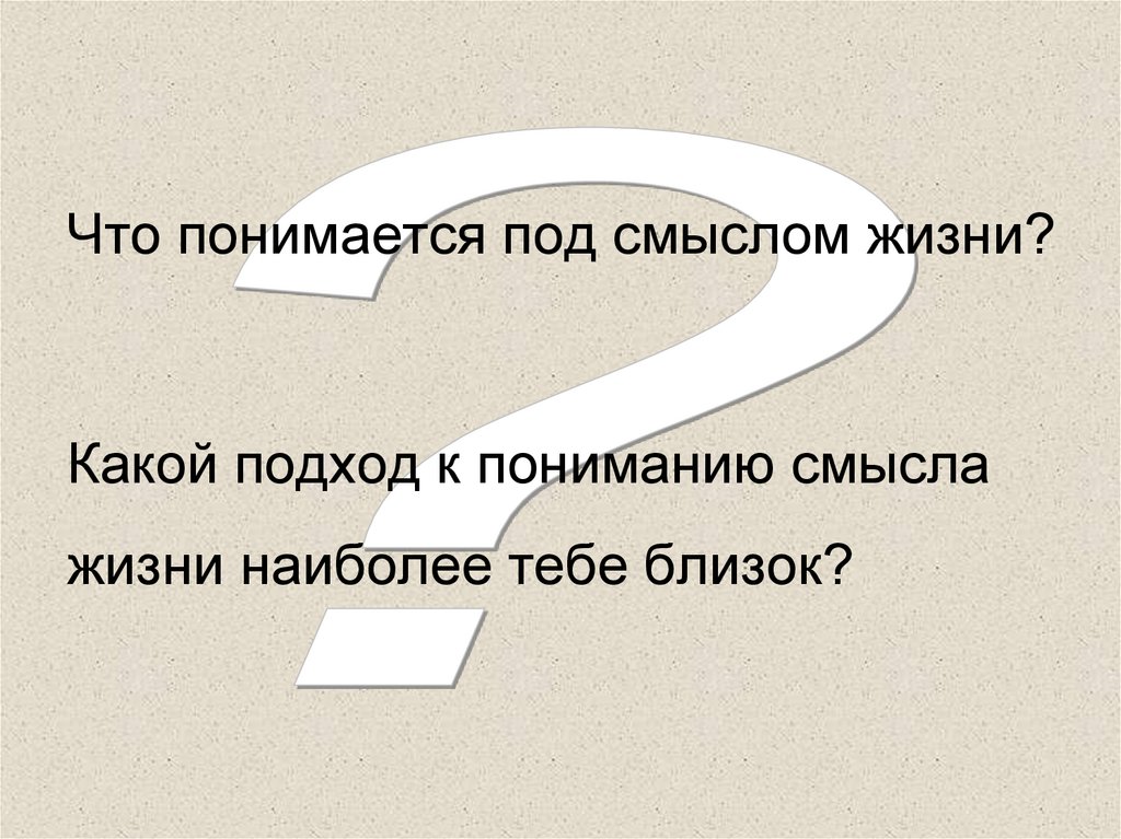Что понимается под смыслом жизни?Какой подход к пониманию смысла
